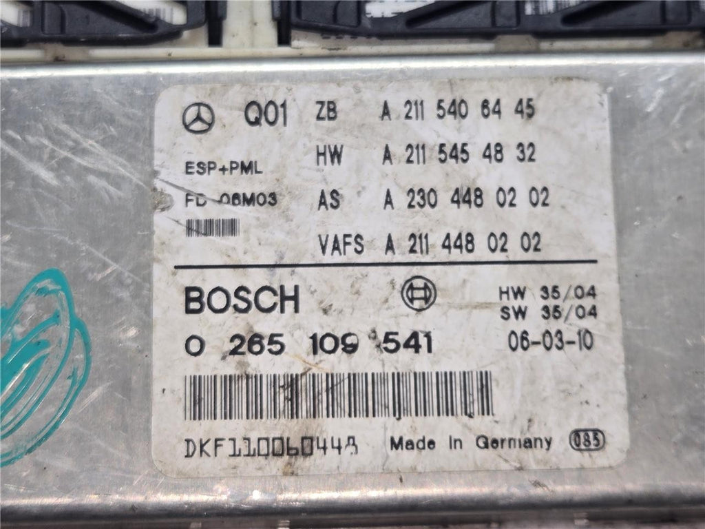 2006 - 2011 Mercedes-Benz W219 CLS500 ABS ESP PML Electronic Stability Brake Module 0 265 109 541 OEM