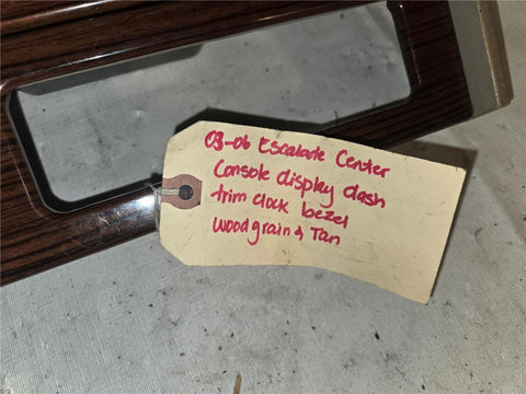 2003 - 2006 Escalade Center Console Display Dash w Trim Clock Bezel Woodgrain & Tan 15129423 OEM