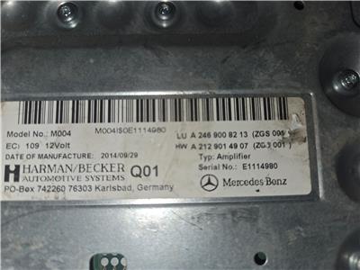 2008 - 2017 Mercedes GLA250 Harman Becker Amplifier Amp P/N: A 246 900 82 13 OEM